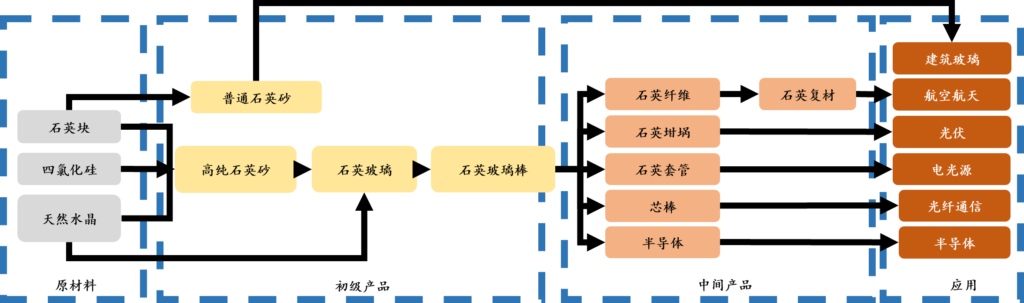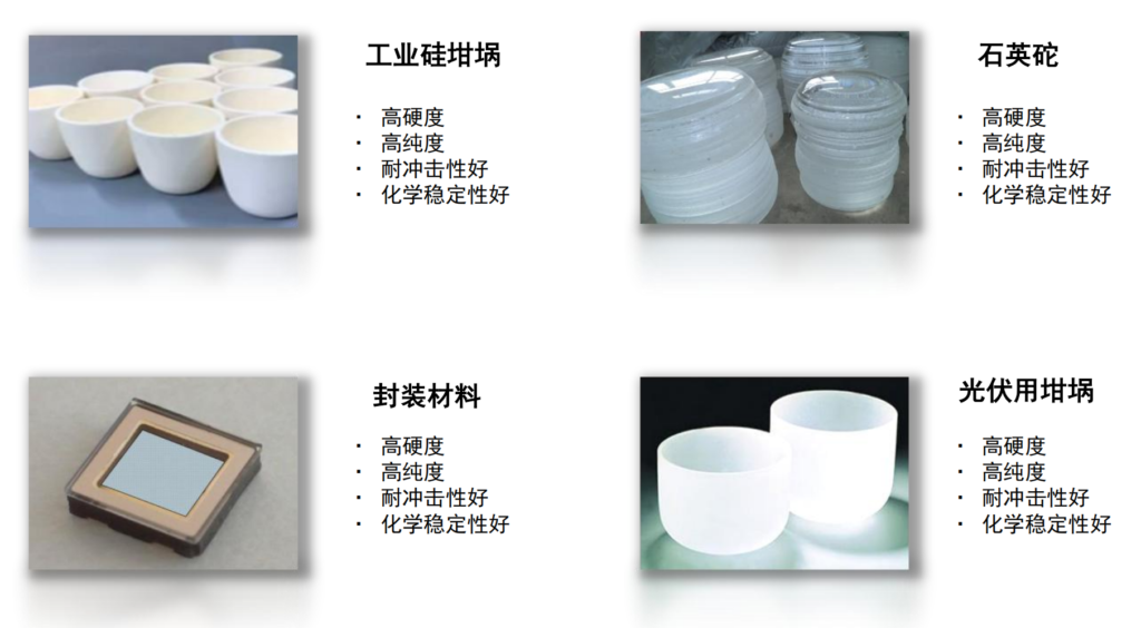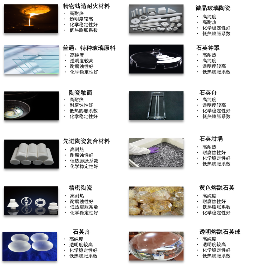 高纯度石英砂是我国新能源、新材料诸多领域的重要上游核心原辅材料,在半导体、光伏、光纤通讯、航空航天、军工都有很多高端应用。