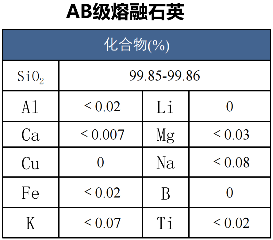 *AB级熔融石英砂99.85≤SiO2≤99.86%、Fe≤0.02%以内