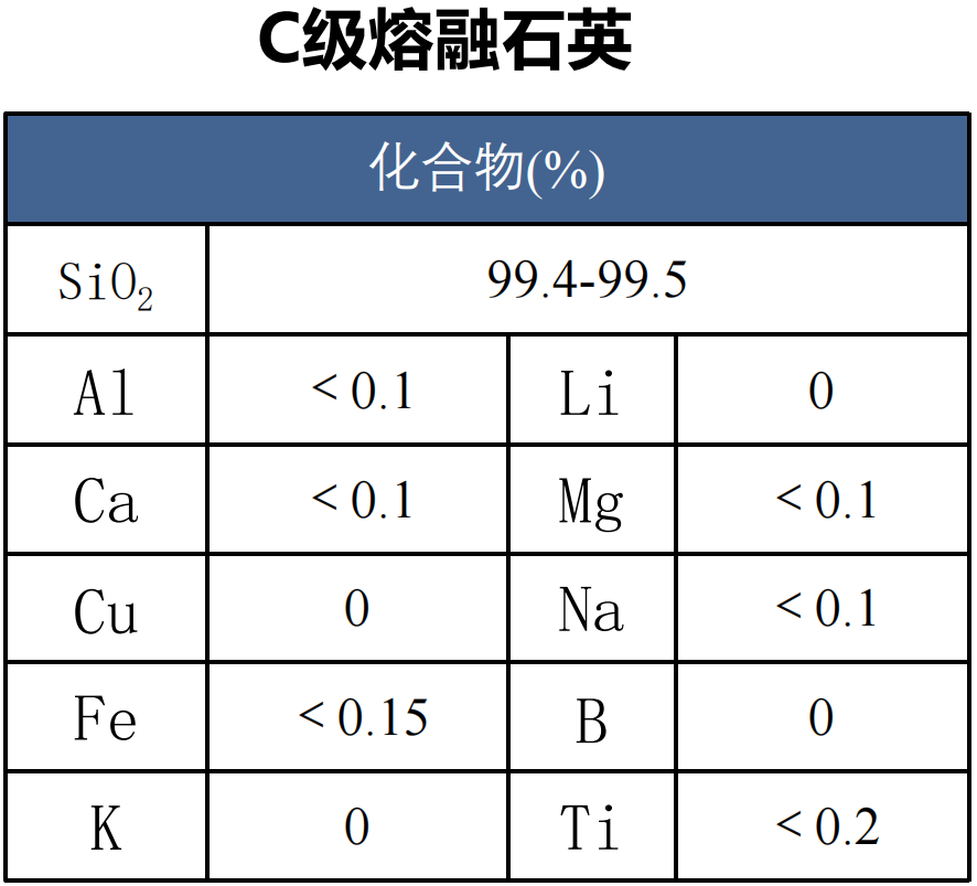*C级熔融石英砂99.4%≤SiO2≤99.5%、Fe≤0.05%以内
