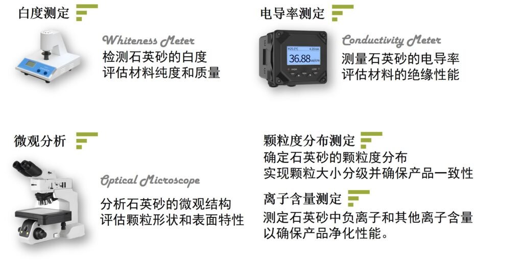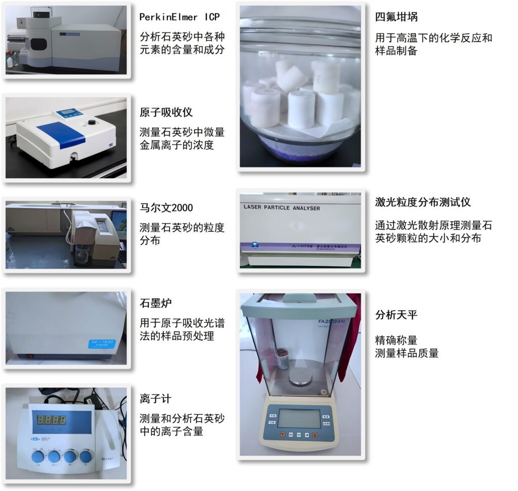 研究中心 Research Institute 技术中心为广大企业提供专业的石英砂材料解决方案。我们始终以客户需求为导向,坚持提供定制性、个性化解决方案,持续为客户创造更高的价值。 我们秉持以客户需求为核心的原则,致力于提供量身定制、独具特色的解决方案,力求持续超越客户期望,创造卓越价值。通过精深的技术专长和创新的服务理念,我们不断推动石英砂材料应用的边界,助力企业在竞争激烈的市场中脱颖而出。 产品细分检测 我们坚持产品细分检测以确保石英砂产品的各项性能指标达到标准要求 专业实验设施
